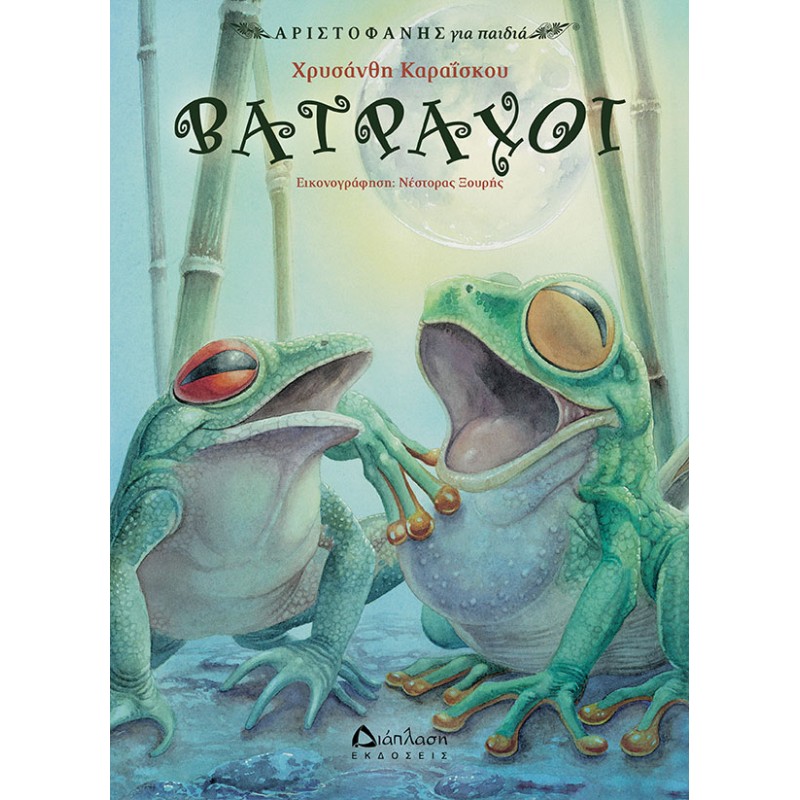 Ο Διόνυσος με τον πιστό του δούλο Ξανθία αποφασίζει να κατέβει στον Άδη για να φέρει πίσω στους ανθρώπους τον Ευριπίδη. Μετά από πολλές περιπέτειες φτάνουν τελικά στον προορισμό τους. Εκεί θα βρεθούν μπροστά σε έναν αγώνα λογομαχίας ανάμεσα στον Ευριπίδη και τον Αισχύλο για το ποιος είναι καλύτερος ποιητής. Ο Διόνυσος ορίζεται κριτής και αποφασίζει να πάρει μαζί του τον νικητή.